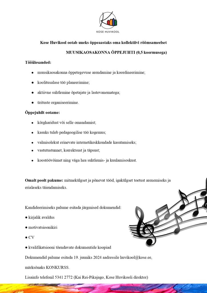 KOSE HUVIKOOLI MUUSIKAOSAKOND OTSIB ÕPPEJUHTI!