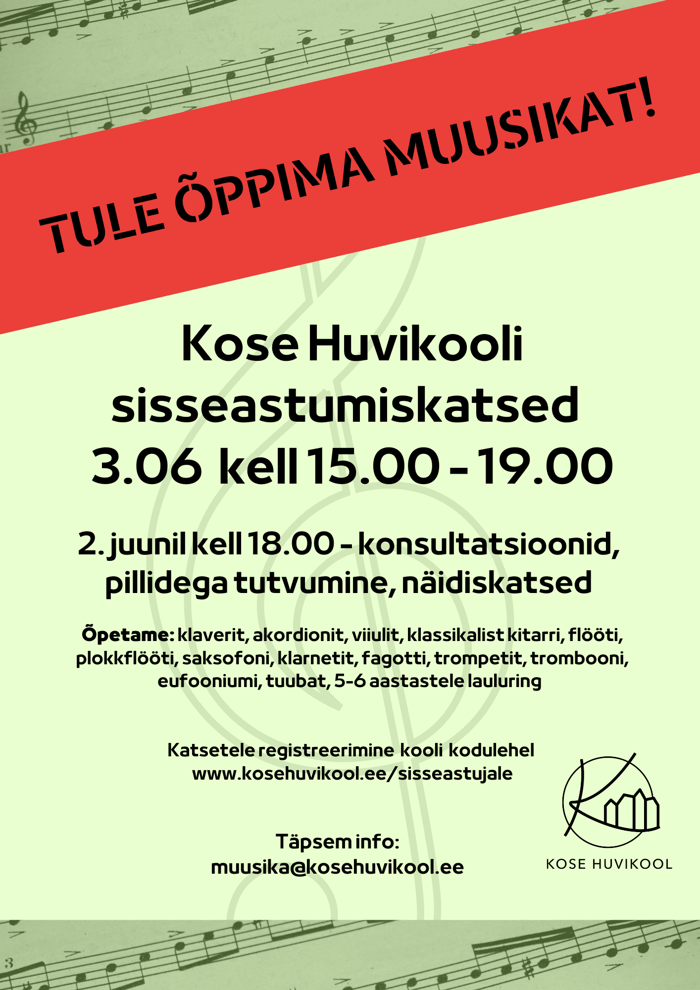 Enne ARNO-s taotluse esitamist palume, et tutvute Kose Huvikooli õppetööd korraldavate dokumentide ja õppetasudega.